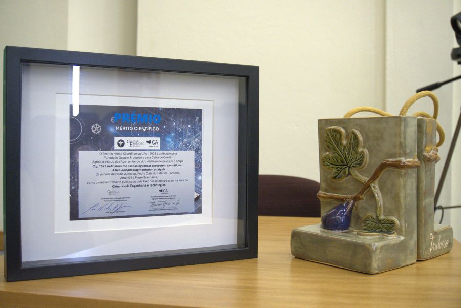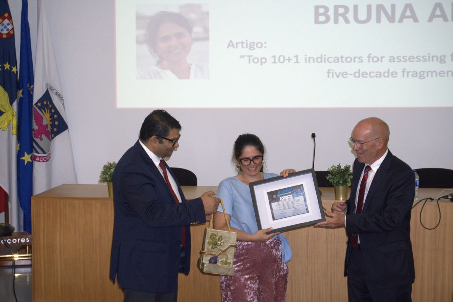 A distinção, no valor de 5.000 euros, foi atribuída à investigadora Bruna Almeida, pelo artigo “Top 10+1 indicators for assessing forest ecosystem conditions: A five-decade fragmentation analysis”, apresentado publicamente pela própria vencedora durante a sessão. A cerimónia contou com a presença do Vice-Reitor para a Administração, Planeamento e Infraestruturas da UAc, Francisco Martins, em representação da Magnífica Reitora, do Presidente do Conselho Diretivo da FGF, José Noronha Rodrigues, e do Presidente do Conselho de Administração da CCAM dos Açores, António Gomes de Sousa, acompanhado pelo Administrador Executivo Luís Lindo.